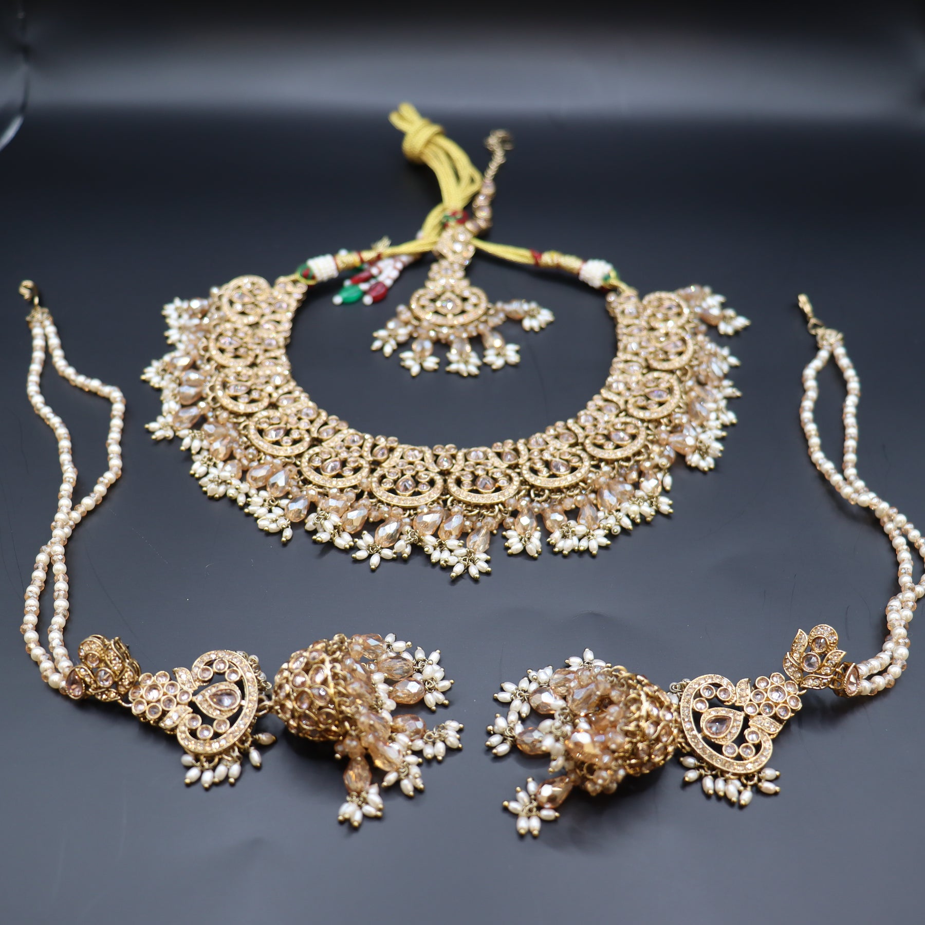 - Includes a full necklace set, a bahubali jhumka, tikka.
