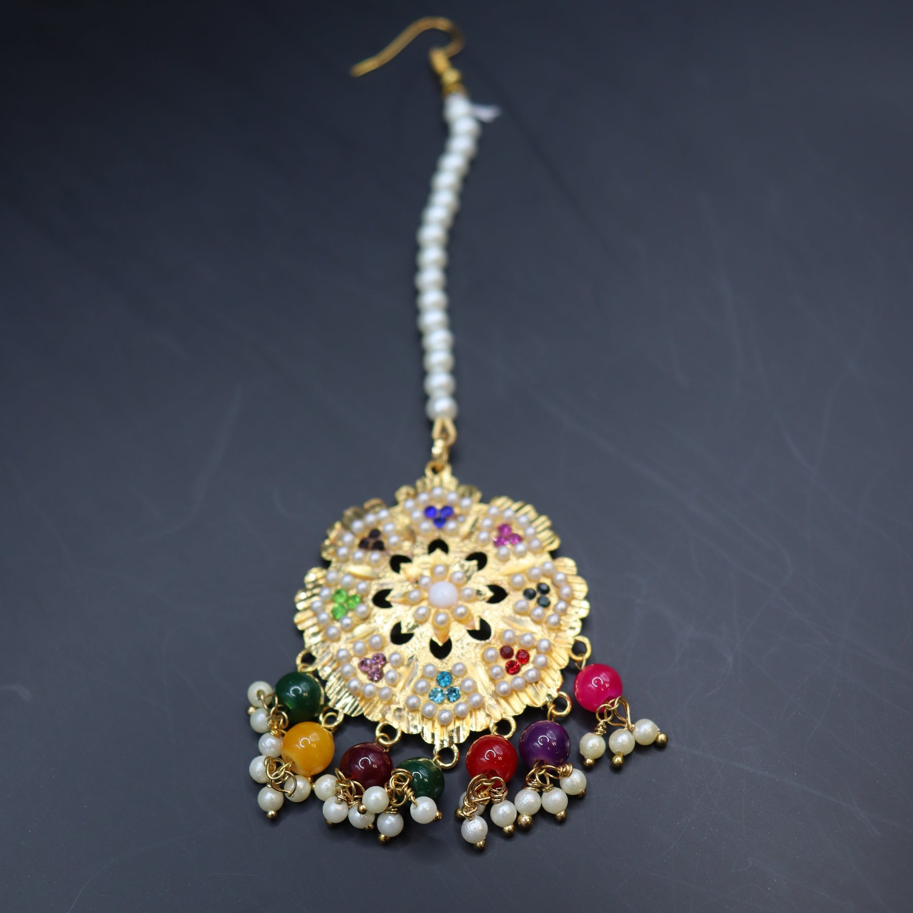 This beautiful choker set comes with earrings, tikki and a bracelet.