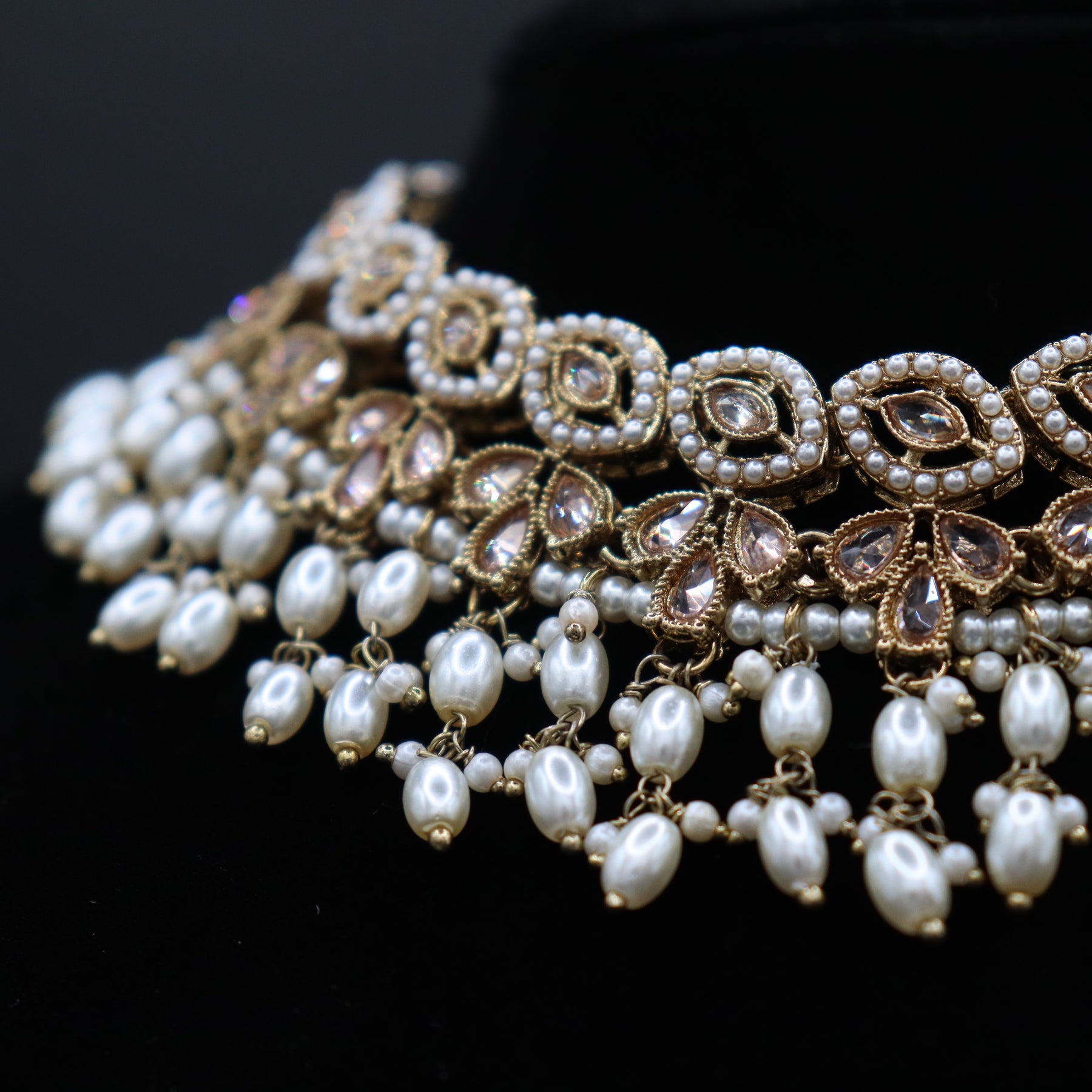 Beige Premium Quality Reversed AD Stone Worked Pakistani Necklace [SKU: N010742]