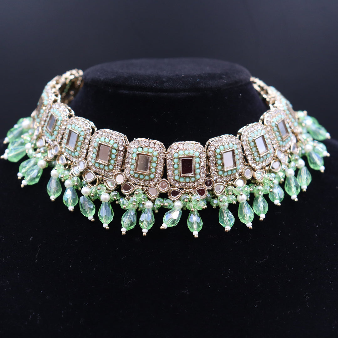 Fern Green Premium Quality Mirror Work Choker Set [SKU: N010191]