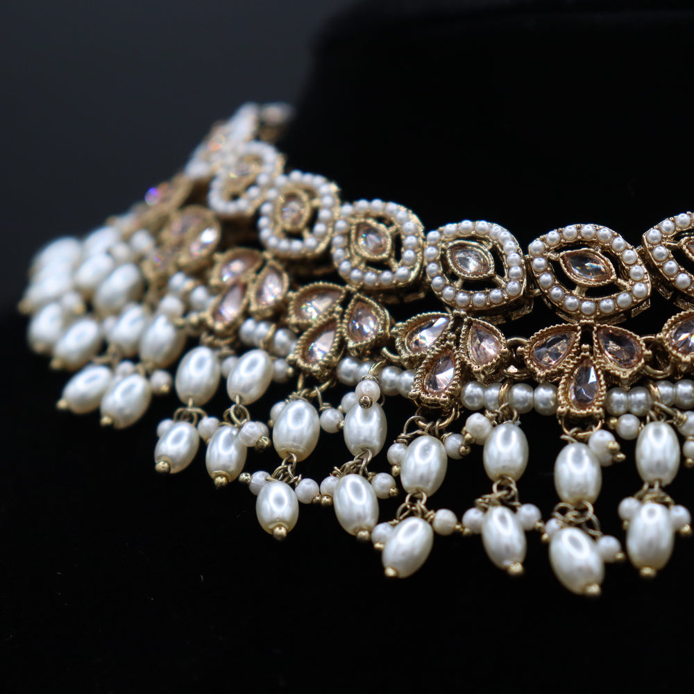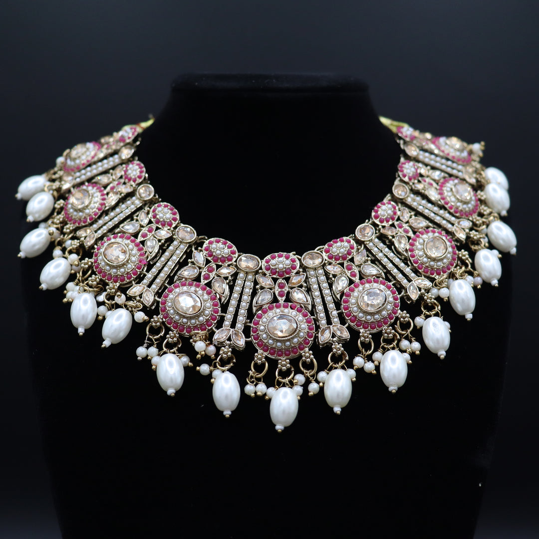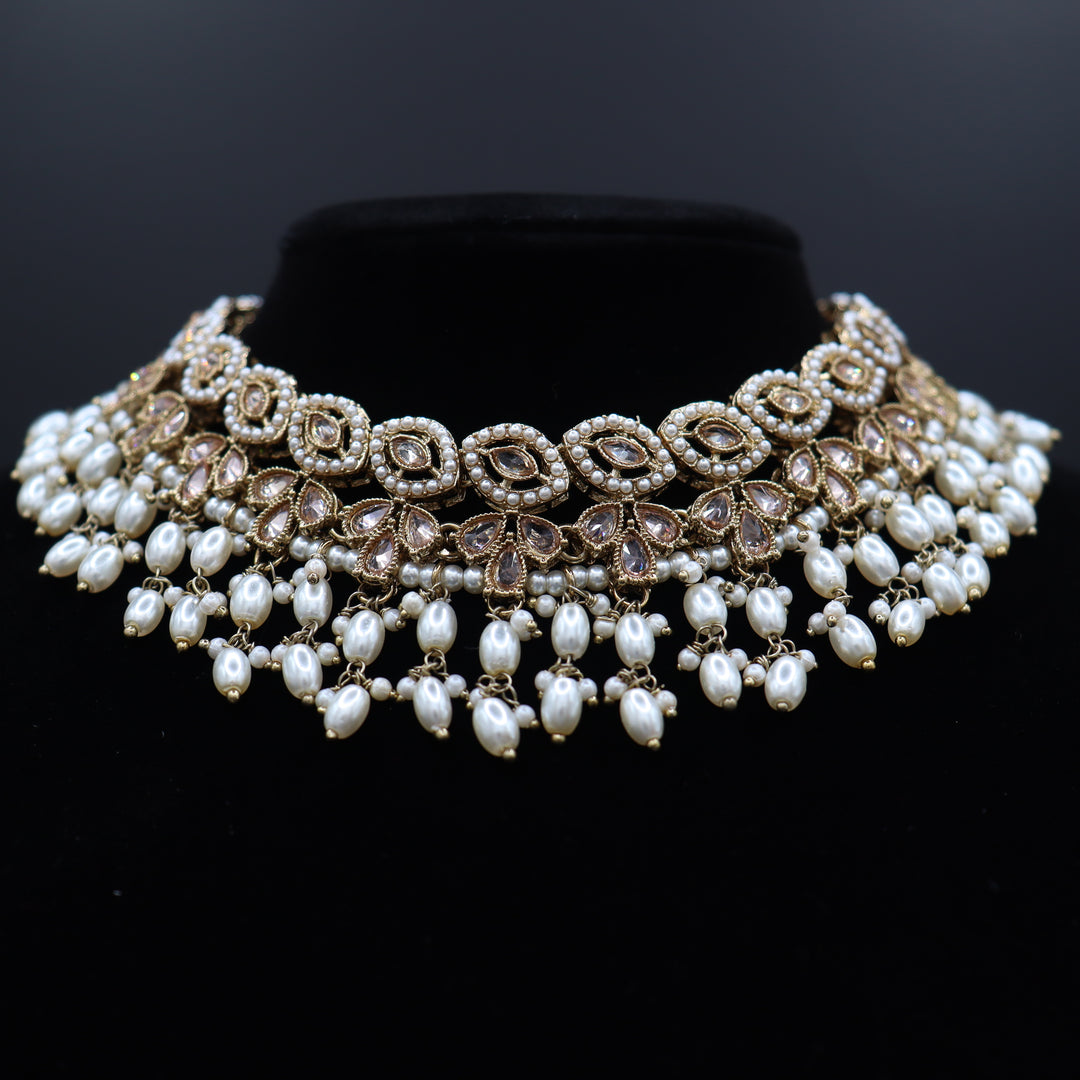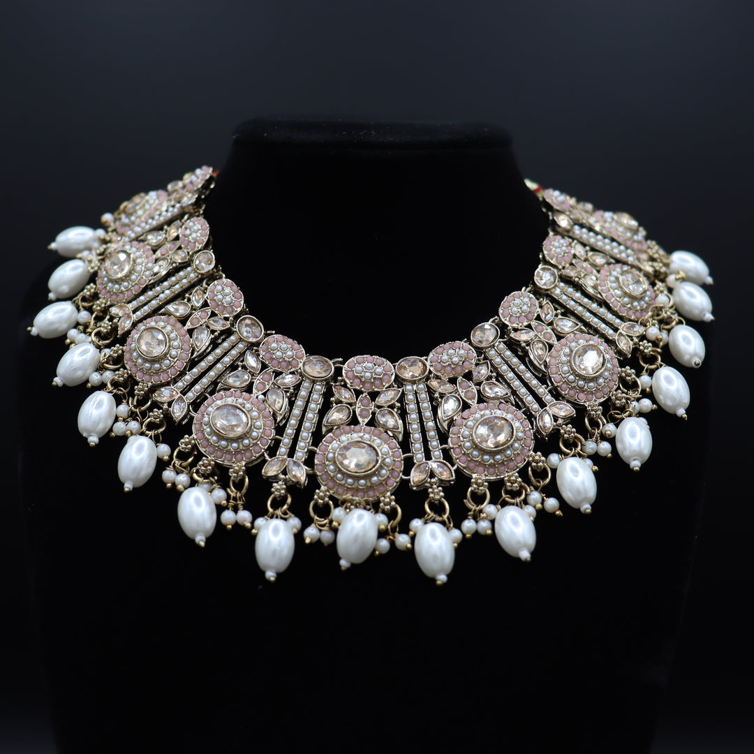 Beige Premium Quality Reversed AD Stone Worked Pakistani Necklace [SKU: N010742]
