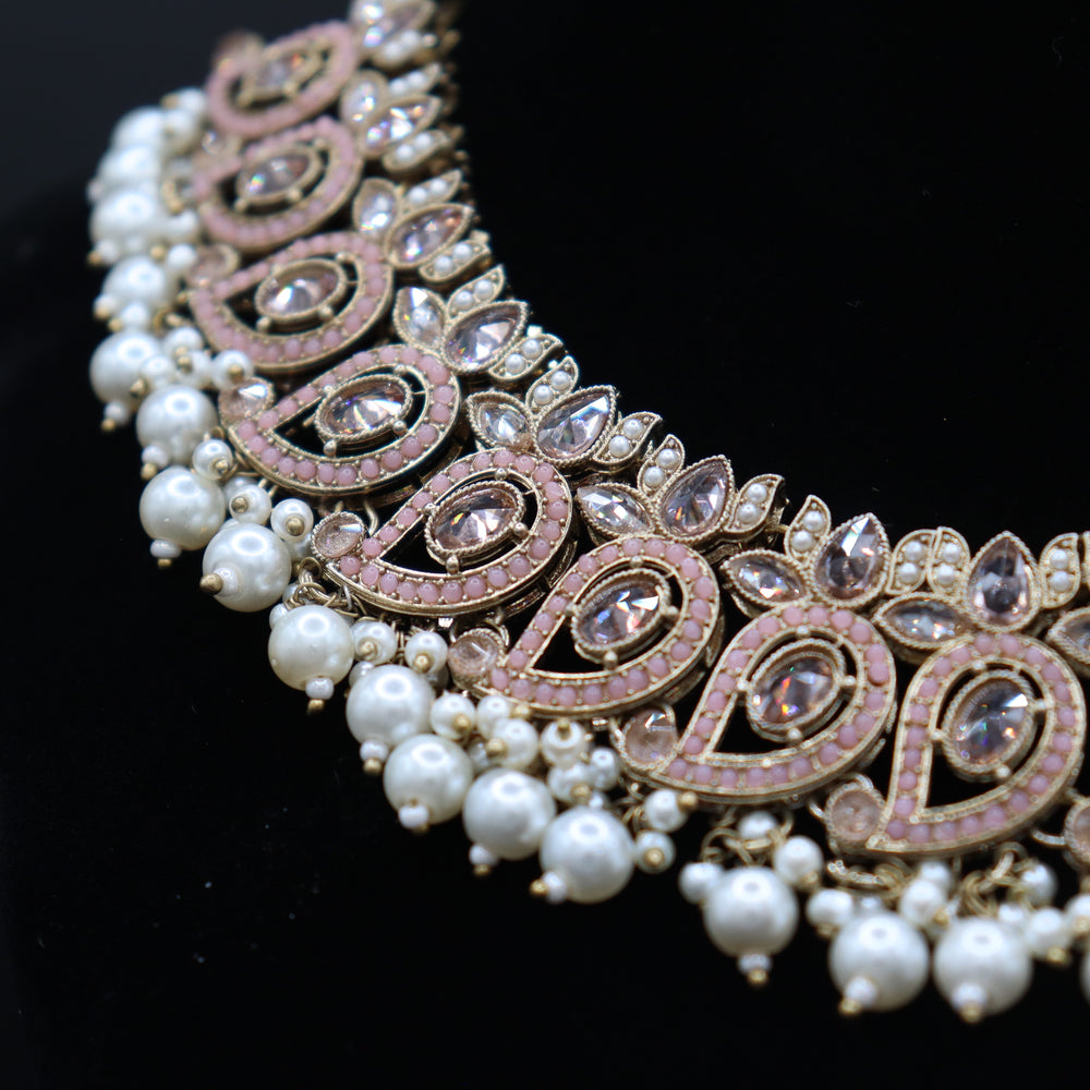 Peachy Beige Premium Quality Reverse AD Stone Worked Necklace Set [SKU: N010471]