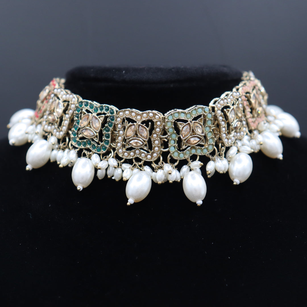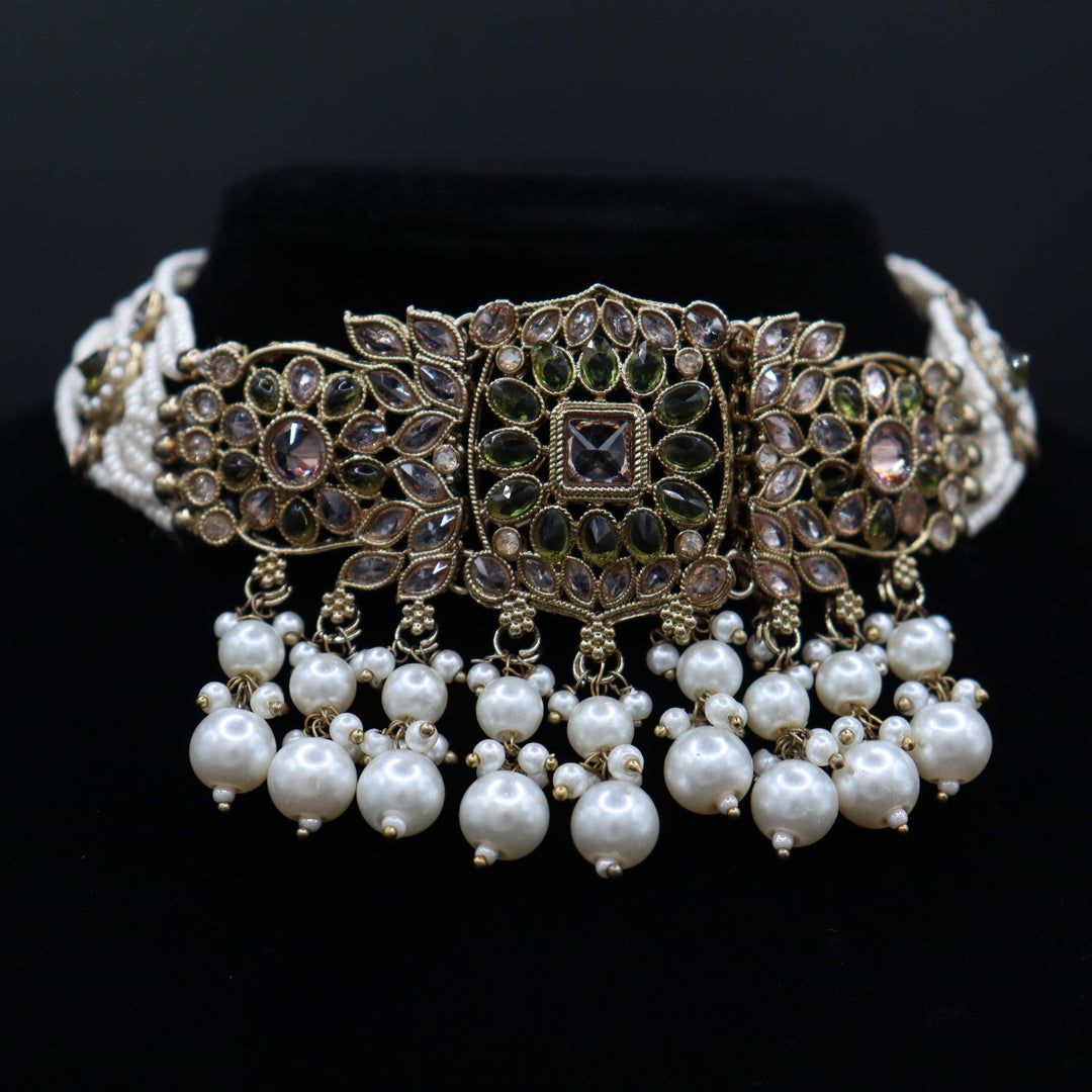 Olive Green Premium Reverse AD Full Choker Set [SKU: N011871]