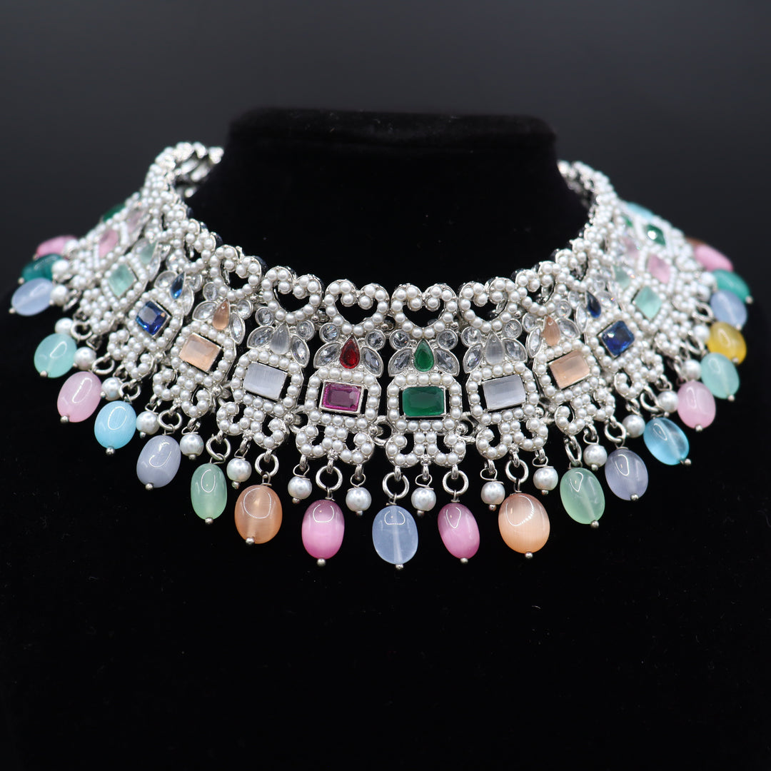 Silver White Premium Pakistani Work Choker Set [SKU: N011961]