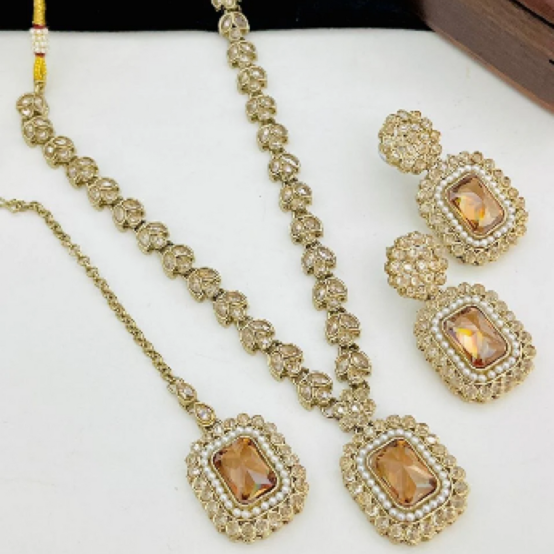 Premium Crystal Moti & Neckles Set. [SKU J100552]