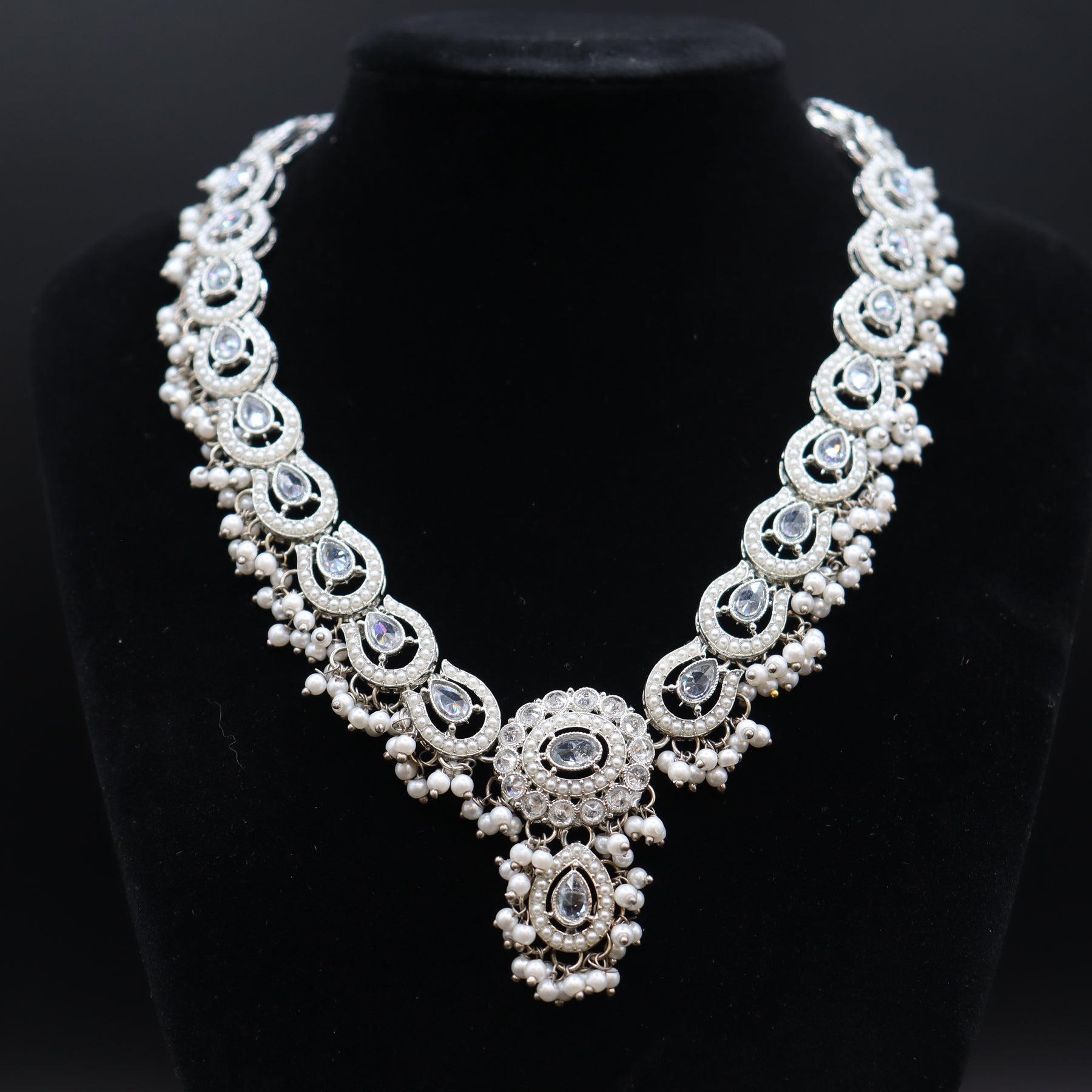 Silver White Premium Pakistani Work Choker Set [SKU: N011961]