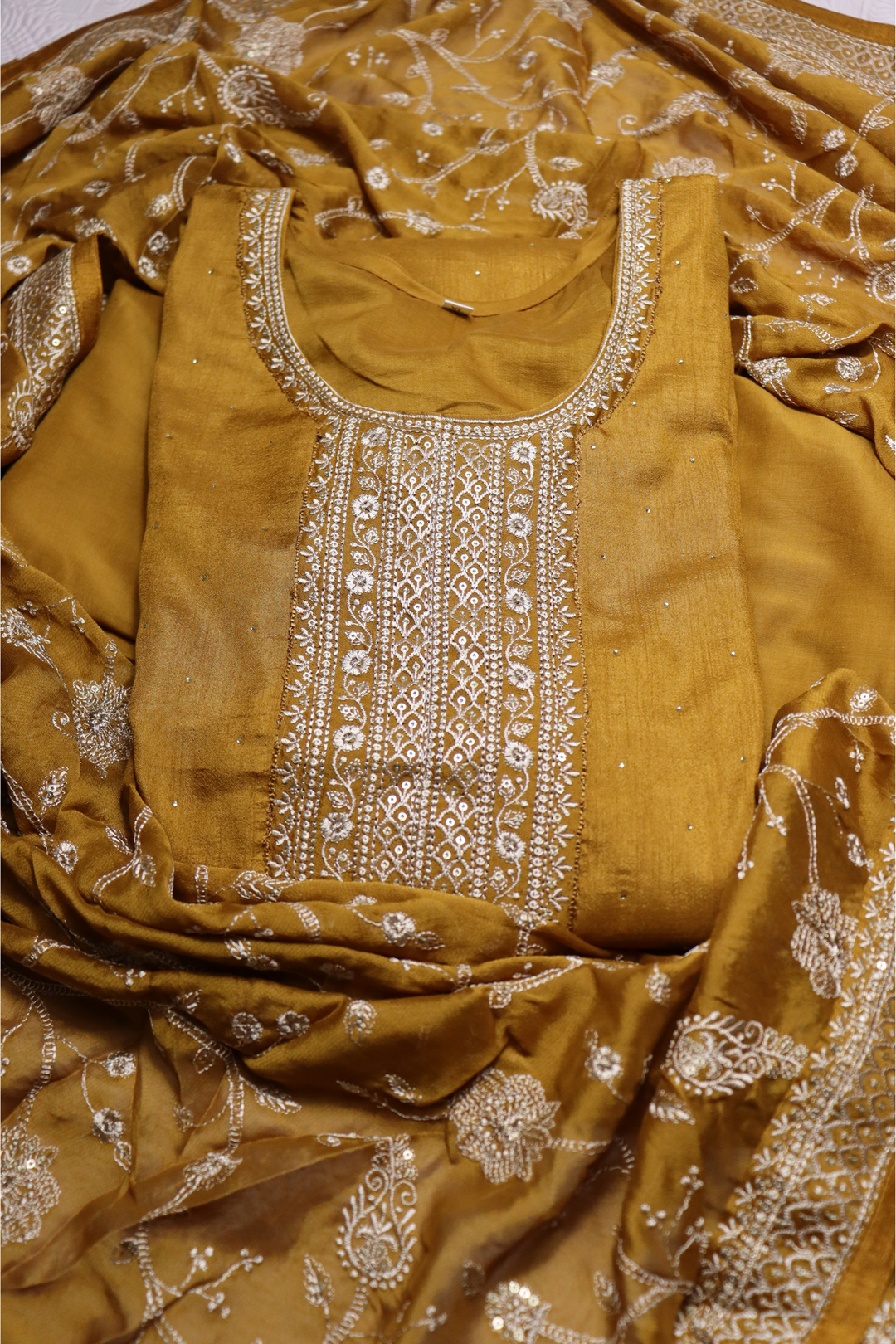 Havy pure Chinon With 3mm embroidery work [SKU:D104052]