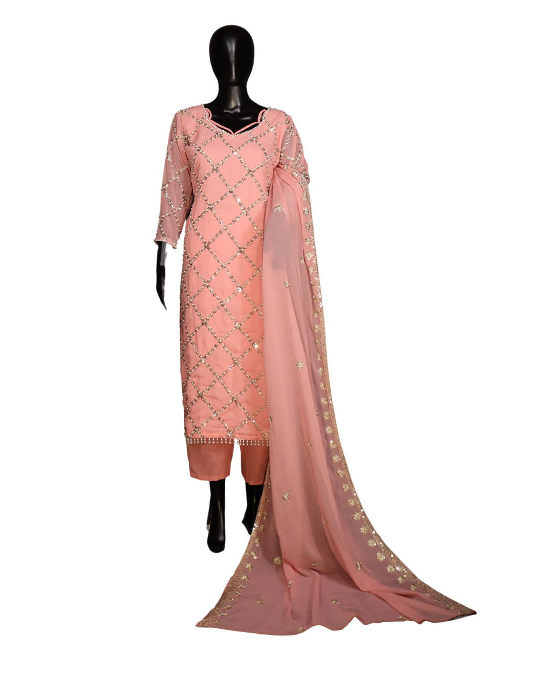 Havy pure Chinon With 3mm embroidery work [SKU:D103552]