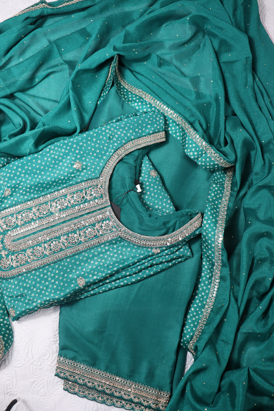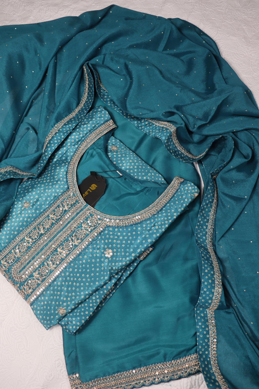 SteelBlue Heavy Faux Georgette With Embroidery & Sequence Worked Salwar Suit