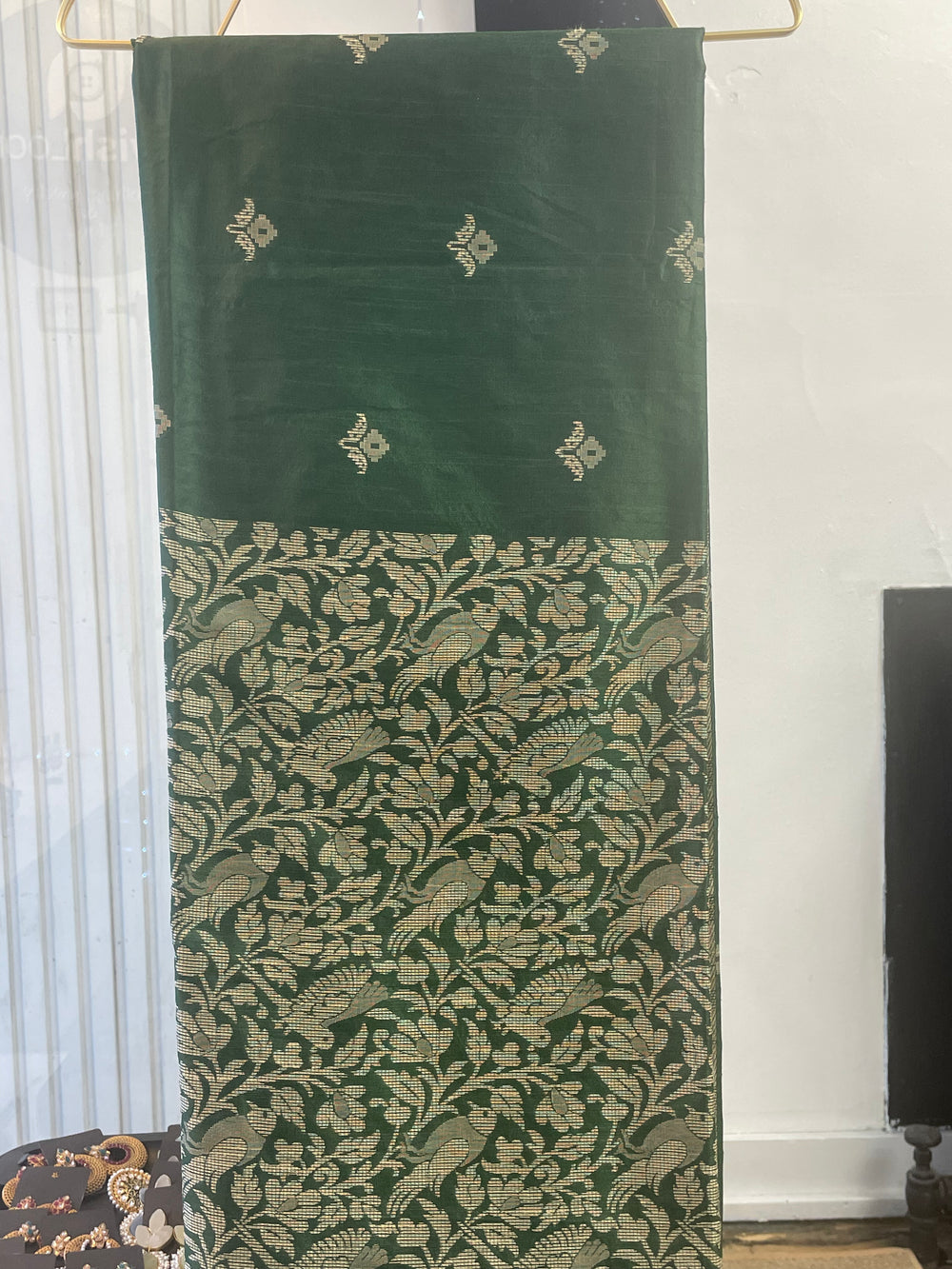 # Green Banglori Handloom Raw Silk Saree [SKU: SO104512]