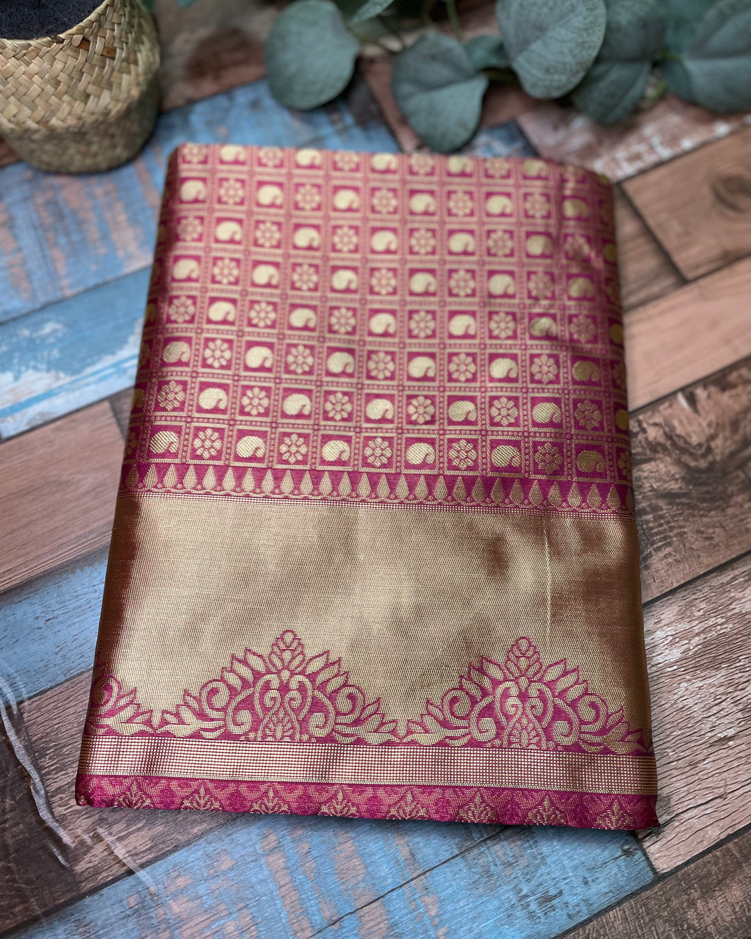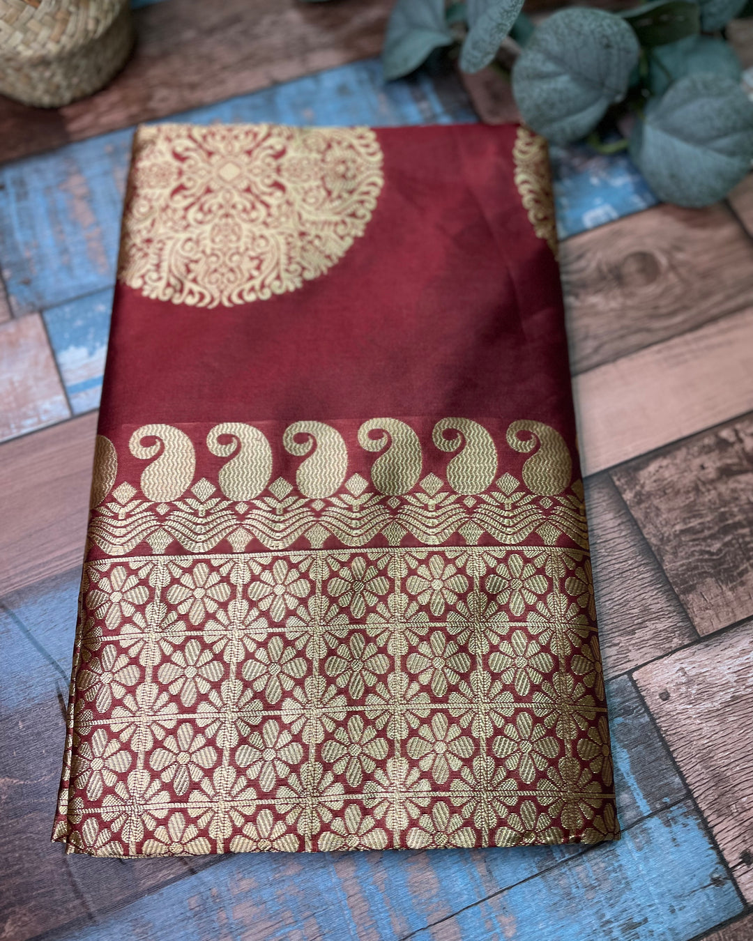 # Golden Maroon Pure Lichi Silk Saree [SKU: SO105219]