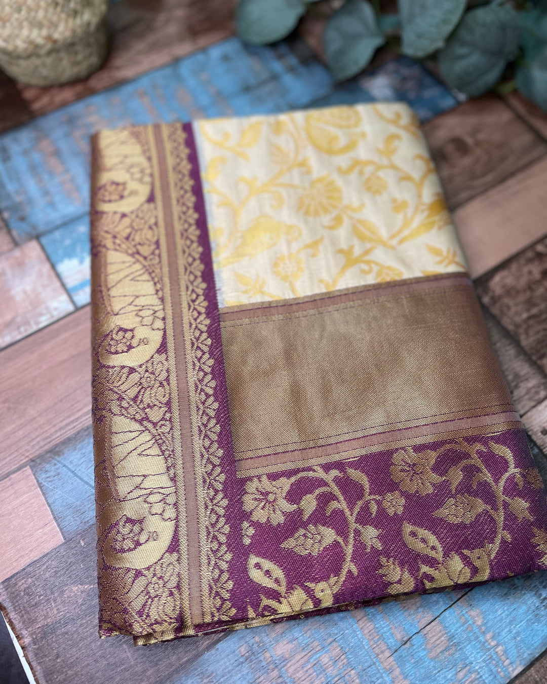 # Creamy Purple Pure Lichi Silk Saree [SKU: SO105017]