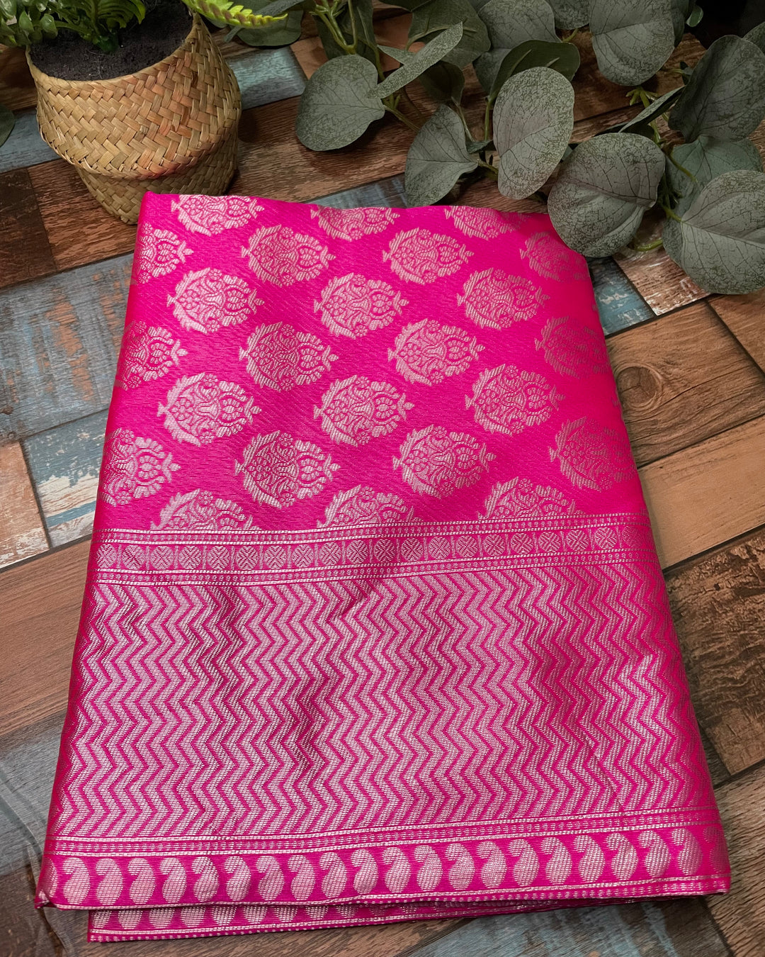 # Hot Pink Pure Lichi Silk Saree [SKU: SO209903]