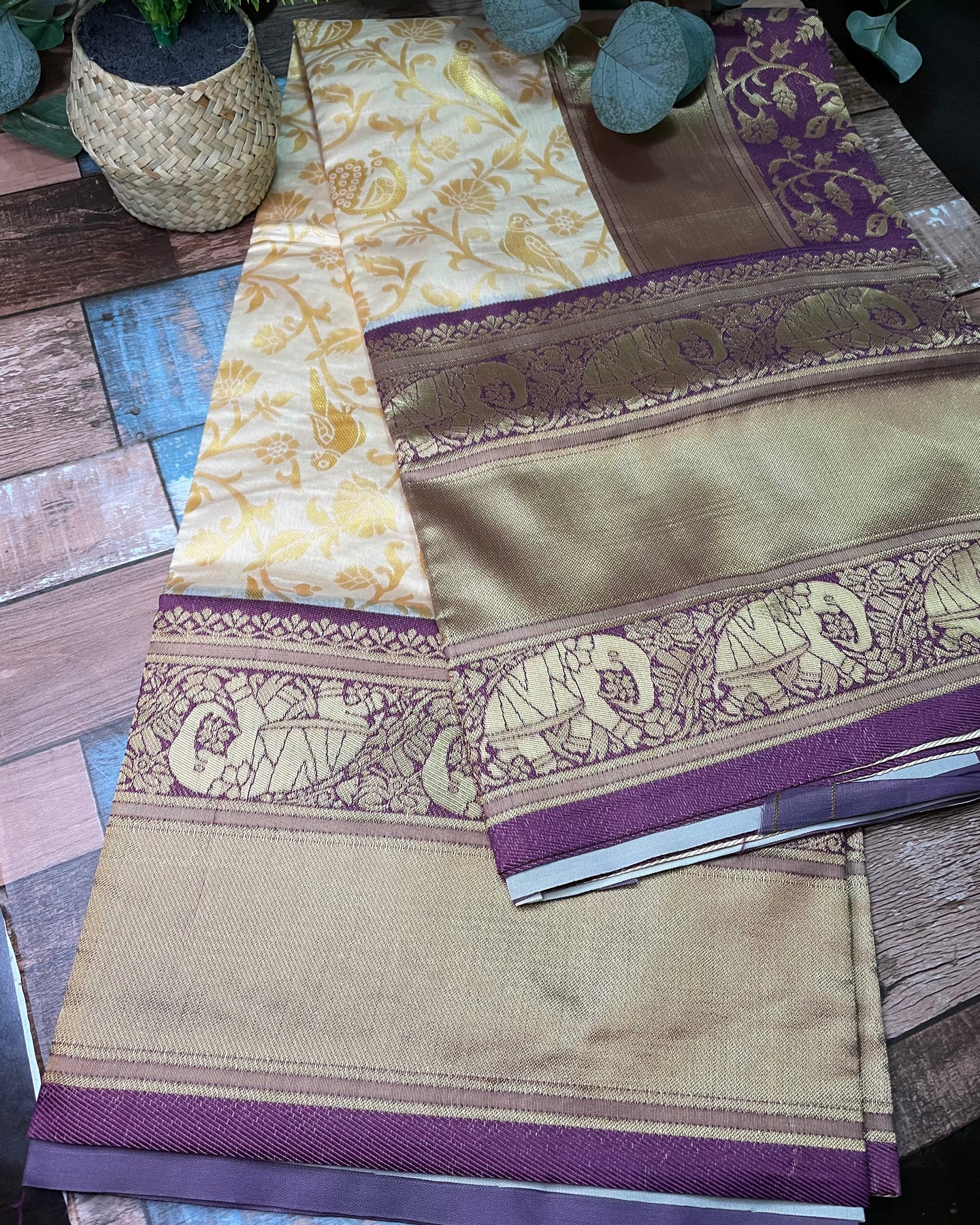 - Zari woven work on all over the saree.