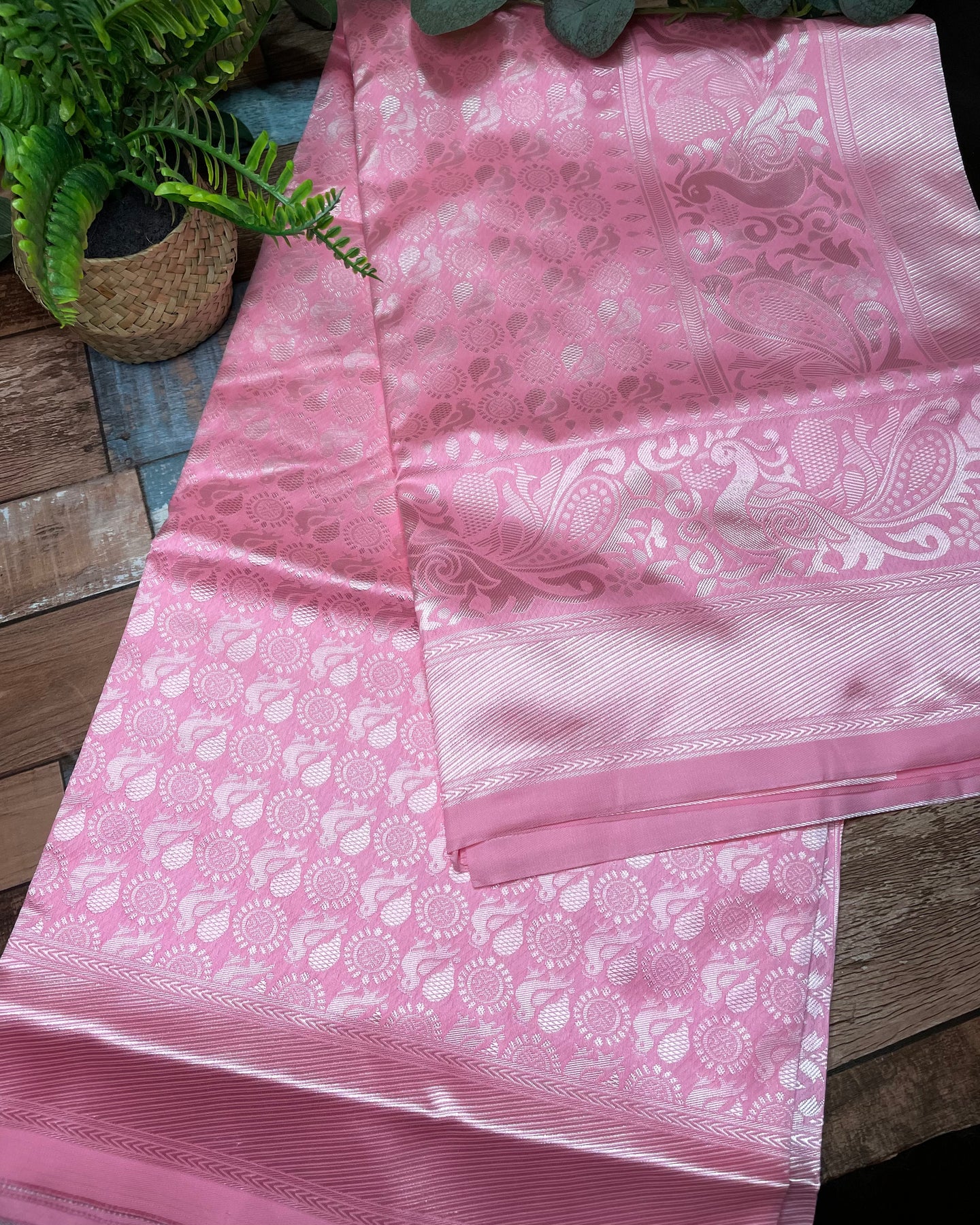 # Pink Pure Litchi Silk Saree With Silver Work [SKU: SO209901]